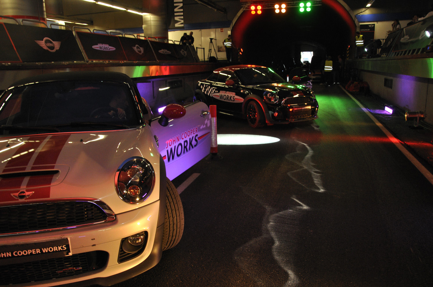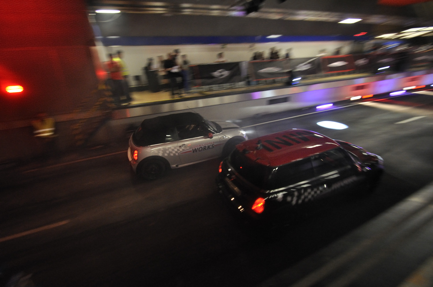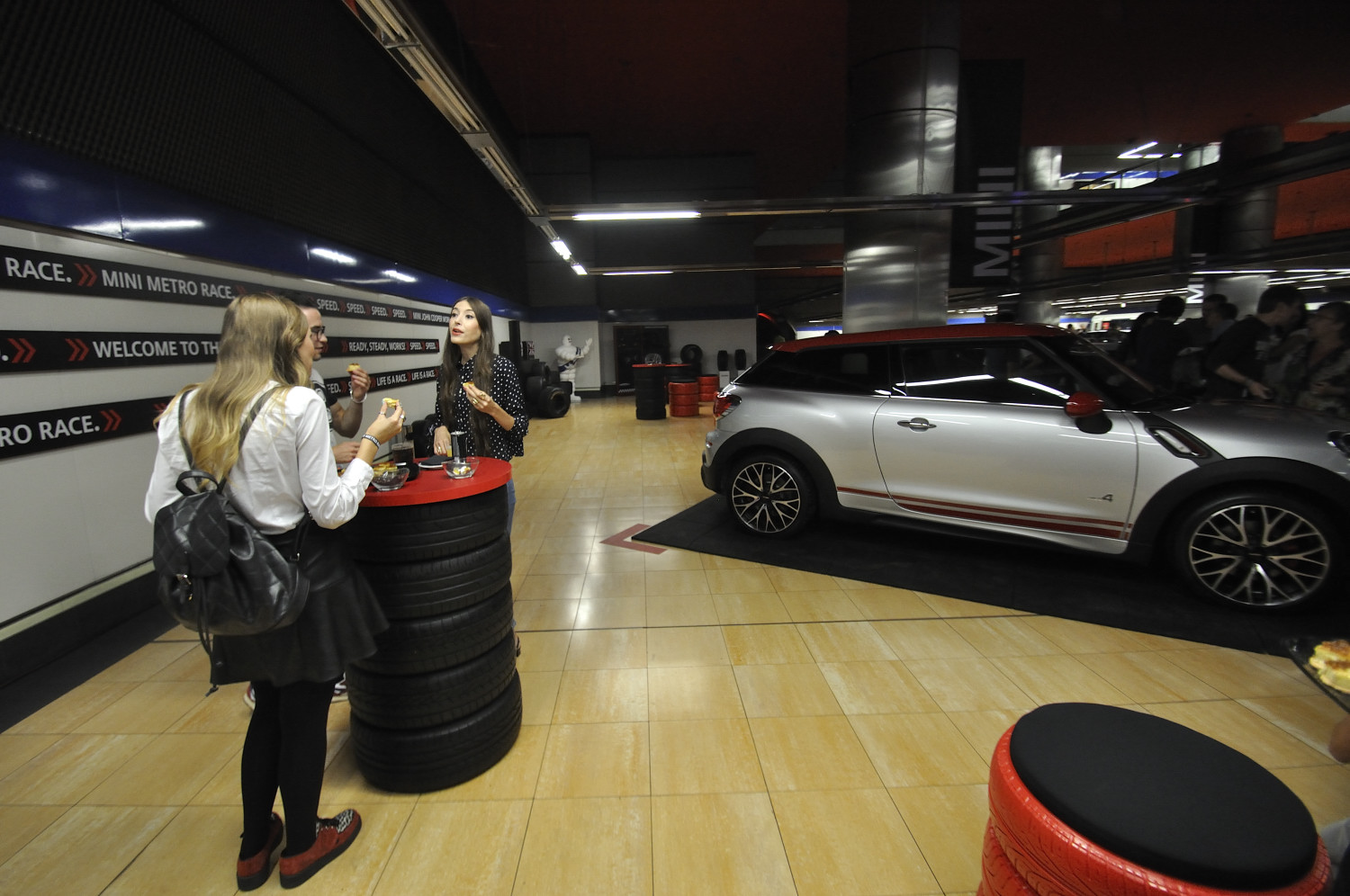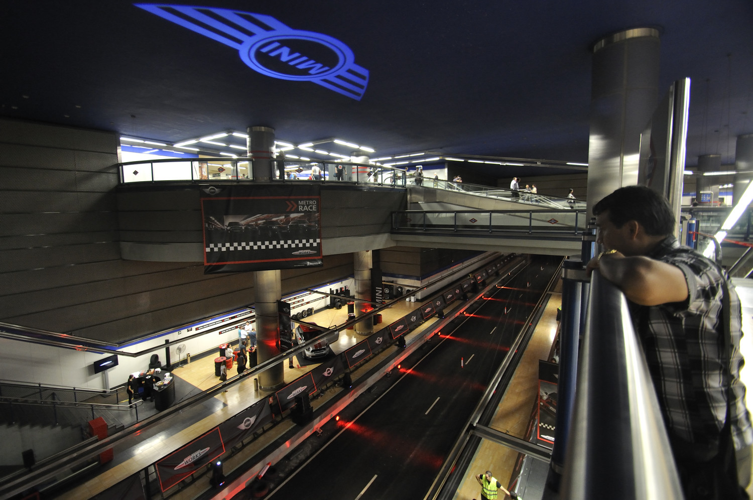 Uno de los andenes de metro de la estación de Chamartín se convirtió en una pista de carreras con coches de competición de la marca Mini John Cooper.