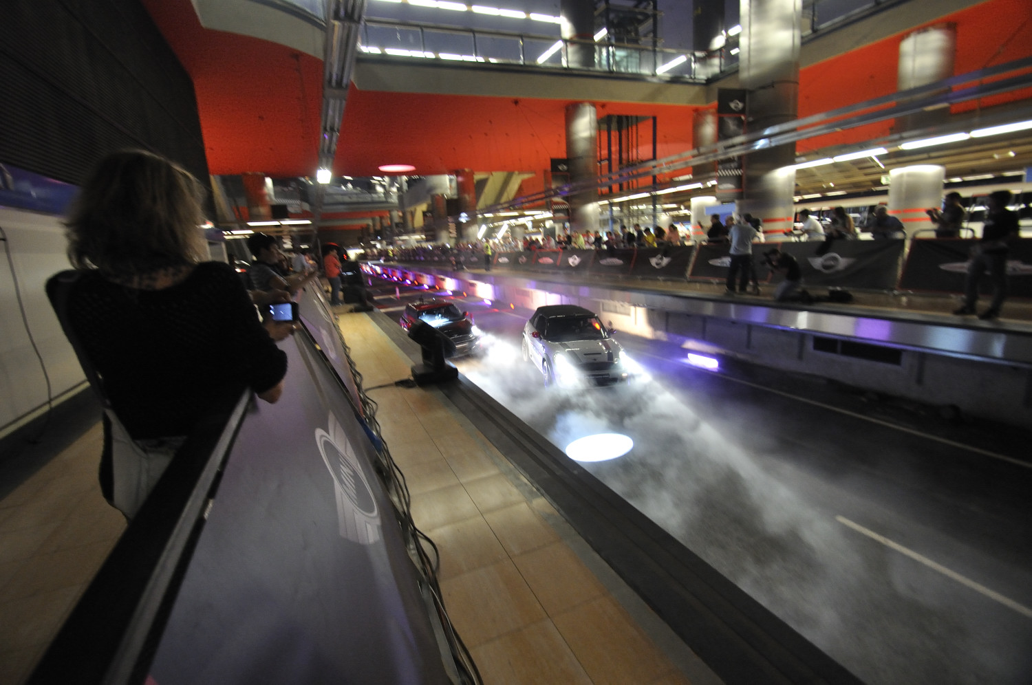 Durante tres días la estación de metro de Chamartín se ha convertido en un circuito de carreras improvisado con motivo de la Mini Metro Race. Un espectáculo organizado por la marca Mini y que ha contado con pilotos de la talla de María de Villota, Marta Suria o Luis Monzón.