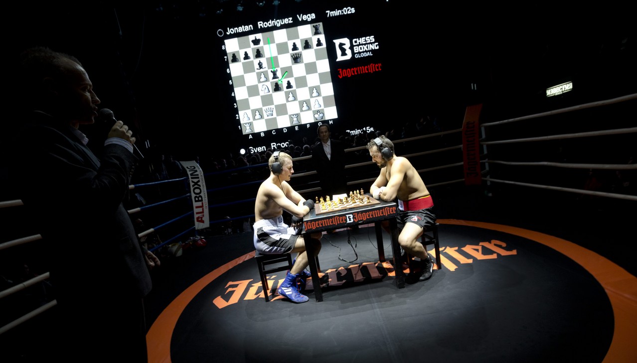 Once asaltos, dos rivales y un cuadrilátero. Se comienza con una partida de ajedrez de cuatro minutos a la que sigue un asalto de tres de boxeo y así, sucesivamente, con descansos de un minuto para cambiar la indumentaria. Se gana si derriba en la lona a su rival, aplica un jaque mate o por puntos. Es el Chess Boxing.