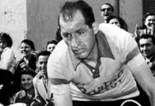 Gino Bartali, compitiendo con su bicicleta.
