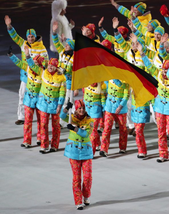 Los atletas alemanes llamaron poderosamente la atención en el desfile con sus peculiares trajes.
