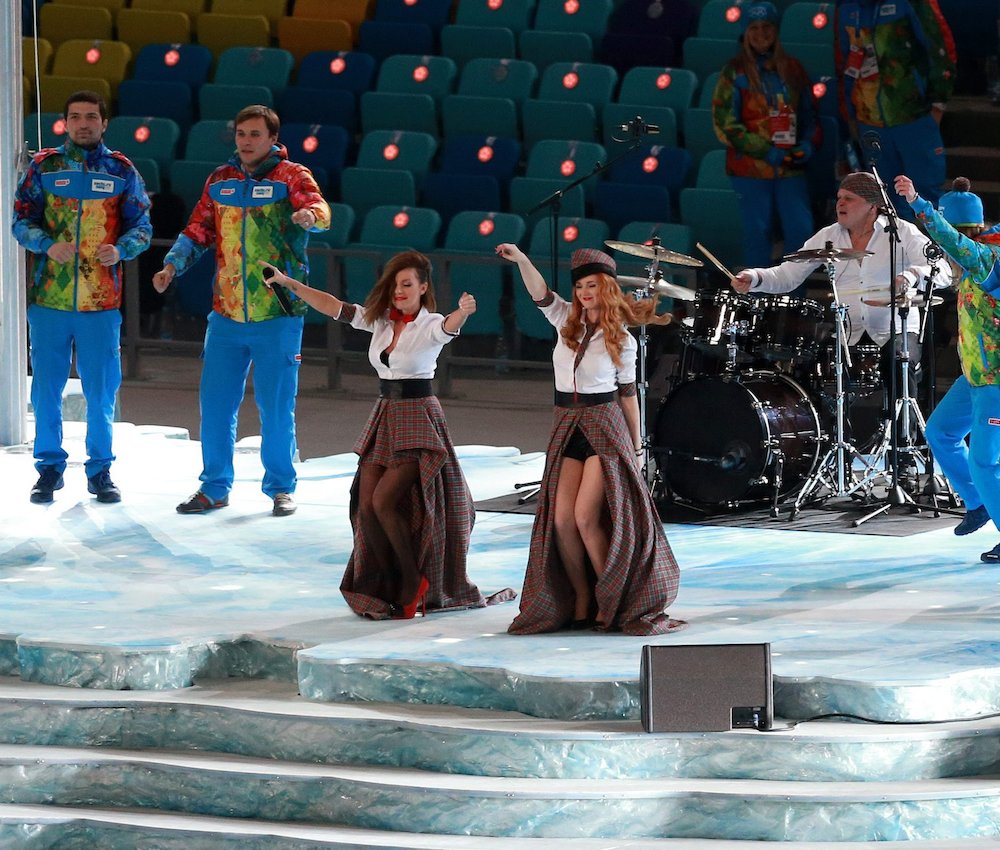 Una de las actuaciones musicales corrió a cargo del dúo TATU, formado por dos jóvenes lesbianas, cuando arrecian las críticas hacia el Gobierno de Putin por su legislación contra los homosexuales en Rusia.