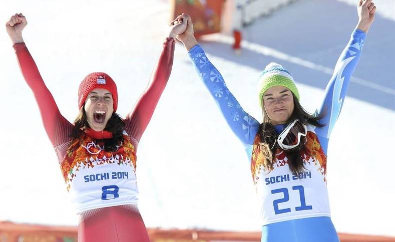 La eslovena Tina Maze y la suiza Dominique Gisin marcaron un hito al compartir título olímpico en esquí alpino, tras acabar igualadas el descenso, la prueba reina de ese deporte, disputada en Krásnaya Poliana en los Juegos Olímpicos de Invierno de Sochi.
