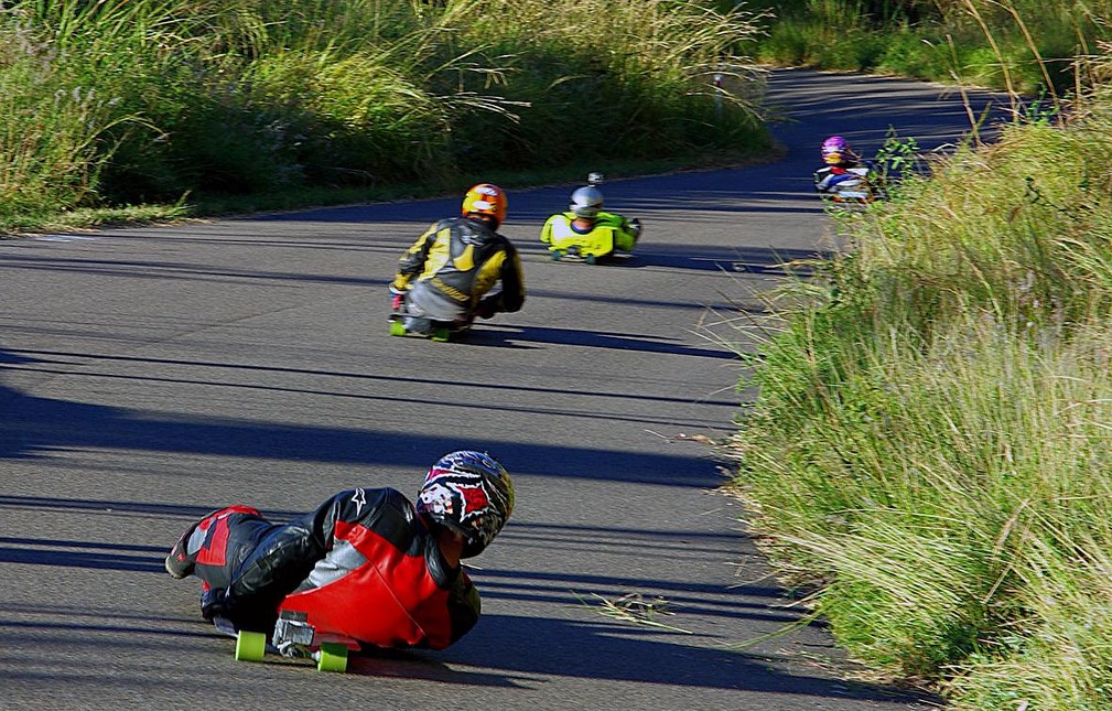 El street luge o trineo de asfalto consiste en realizar carreras en pendientes con una especie de monopatines. Se conduce tumbado, a unos cinco centímetros del suelo, y pueden alcanzarse hasta los 180km/h. Un despiste o un bache en la carretera, puede resultar mortal.