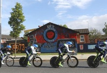 Corredores del Greenedge, durante la contrarreloj por equipos en las calles de Belfast. | EFE