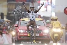 comentarios Estuvieron escapados durante más de 180 kilómetros y Maté fue el último en ser cazado. El francés, Pineau, se queja de su actitud en los relevos.