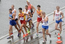 Los españoles Miguel Ángel López (3º izq) y Álvaro Martin (3º dcha), en la prueba de 20 km. | EFE