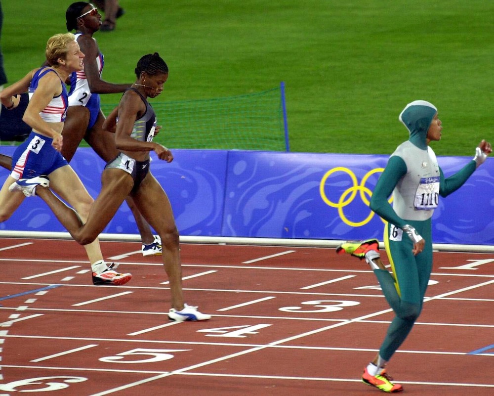 En el 92 se convirtió en la primera atleta de origen aborigen en competir en unos Juegos Olímpicos. Ocho años después, en Sydney, ganó el oro en los 400 metros lisos ataviada con este extraño traje aerodinámico que le cubría todo el cuerpo, excepto los dedos y la cara.
