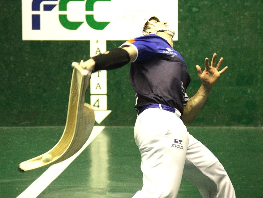 Similar a la pelota vasca, pero aquí se atrapa la pelota con una cesta y de mimbre (ahora ya de tejidos sintéticos) y se lanza la pelota contra el frontón. Pesa entre 200 y 600 gramos y se encaja a modo de guante.