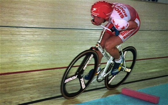 Este ciclista escocés, Graeme Obree, se hizo famoso en los noventa por batir varias veces el récord de la hora...con una bici hecha con piezas de lavadora. El manillar era de manera, y debido a su extraña manera de pedalear, no tenía barra horizontal en el cuadro. Extraño, pero a él le sirvió.