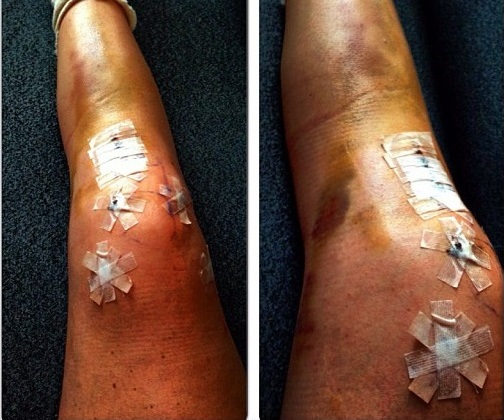 Así acabó su rodilla derecha. Su operación supuso el final de la temporada para Lindsey, y había posibilidades de decir adiós a su carrera profesional.