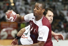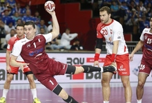 Rafael Capote (i), cubano nacionalizado qatarí, intenta lanzar ante la oposición de Müller. | EFE