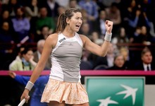 Garbiñe Muguruza, ganando un punto ante Rumanía. | EFE