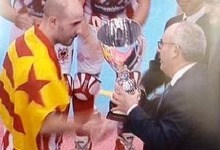 'Titi' Roca recoge el trofeo de campeón de la Copa del Rey, con la estelada.