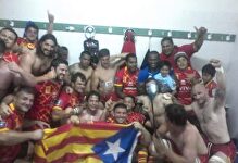 La Union Sportive des Arlequins Perpignanais celebró su pase al playoff con una bandera independentista.