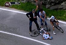 Fue durante el descenso del puerto de Barbagelata, a 38 de meta de la tercera etapa. Ha sufrido un fuerte golpe en la cara.