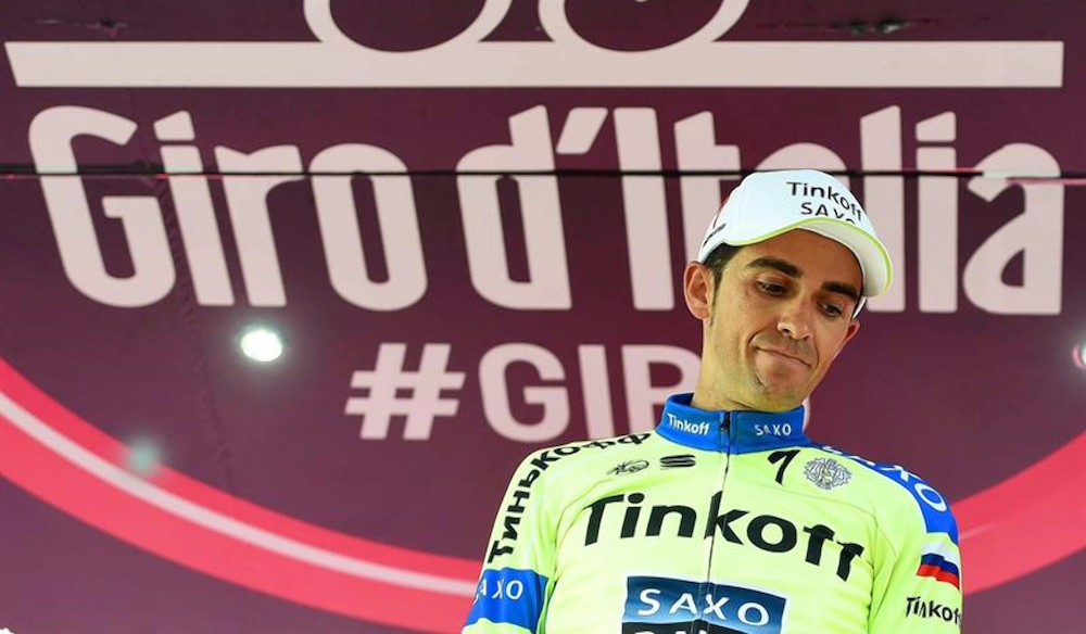 Contador mantuvo el brazo izquierdo inmóvil durante la ceremonia de premios en el podio. Al madrileño se le veía preocupado y aguantando el dolor. Su equipo ya ha anunciado que, dependiendo de cómo pase la noche, es posible que el viernes no tome la salida en Grosseto (La Toscana).