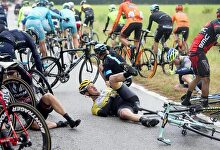Caída a 3,1 kilómetros de meta en la que se vio afectado Alberto Contador. | EFE