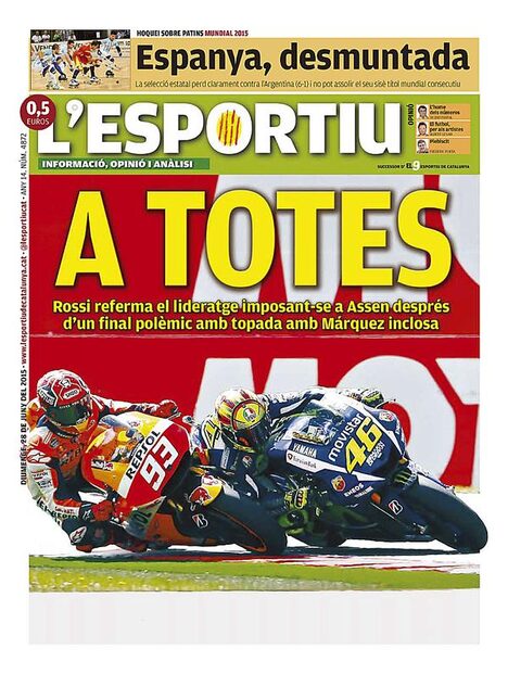 Sin embargo, durante esta semana, el diario deportivo catalán L´Esportiu ha ido un paso más allá. El pasado miércoles 24 de junio incluía en su portada una alusión al Mundial de hockey patines celebrado en Francia, en el que España se enfrentaría en cuartos de final a Mozambique, tras golear a Holanda por 12-0. En la noticia, se hace alusión a que "Mozambique será el rival de los catalanes en los cuartos de final".