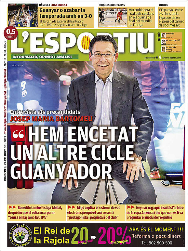 Sin duda, no parece la mejor forma de aliviar tensiones en el conflicto independentista. Salvo que a L´Esportiu le interese lo contrario, claro.
