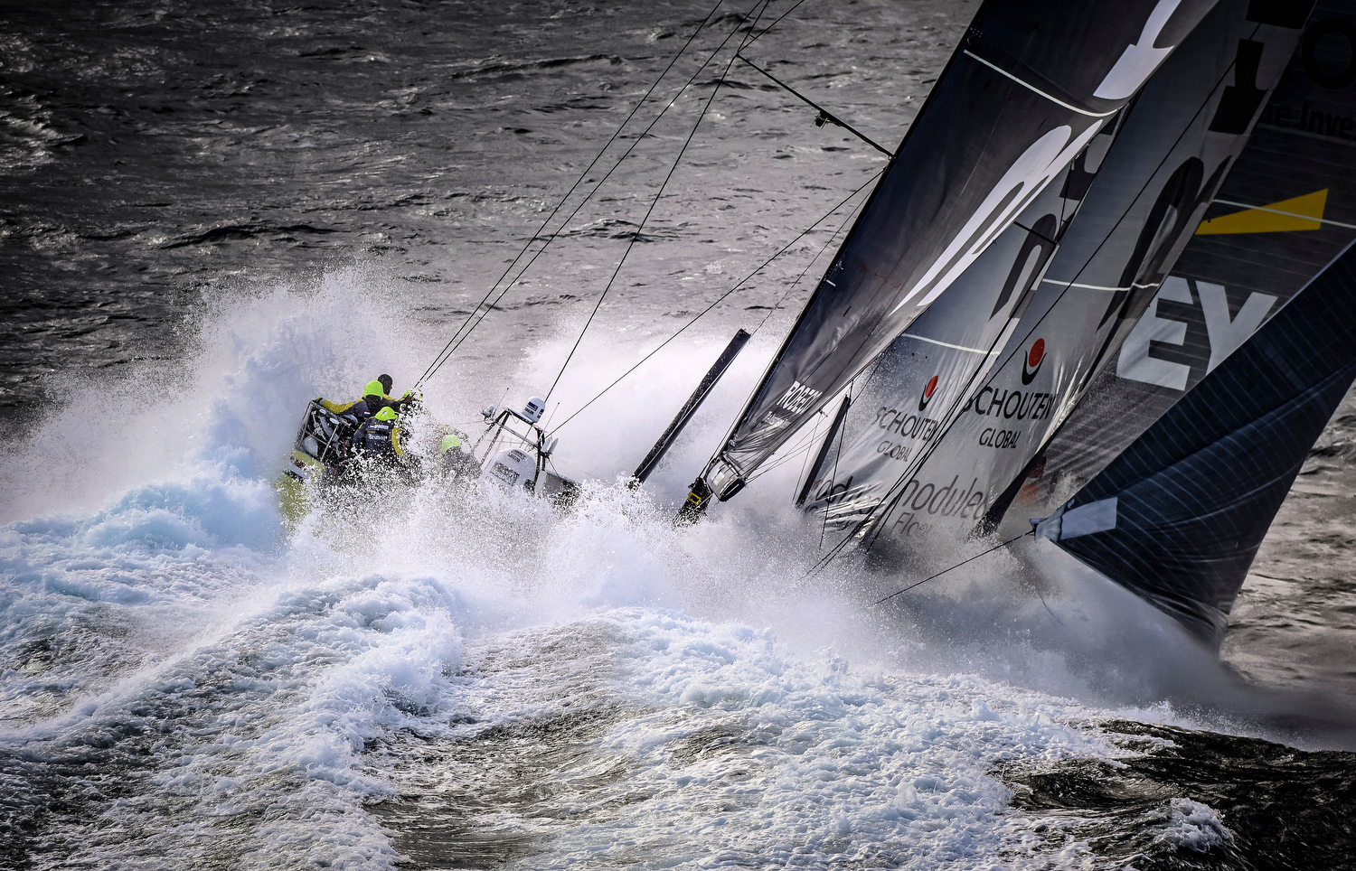 En la misma etapa, los barcos rodean el Cabo de Hornos, uno de los más peligrosos del mundo, debido a sus enormes olas y fuertes vientos. En la foto, Team Brunel hunde el morro en el agua.