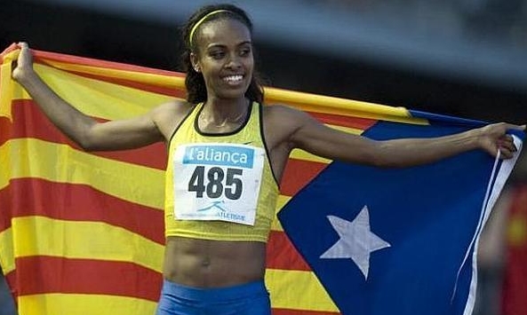La atleta etíope Genzebe Dibaba, hermana de la triple campeona olímpica Tirunesh Dibaba, posó este miércoles con una estelada, la bandera independentista catalana, tras ganar la prueba del 1.500 en el Mitin Internacional de Barcelona.