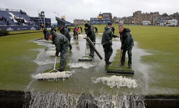 Las fuertes lluvias que están han azotando el campo de Saint Andrews, sede este semana de la 144 edición del Abierto Británico de golf, han provocado la suspensión del juego cuando el primer grupo estaba llegando al green del primer hoyo, poco antes de las siete de la mañana.