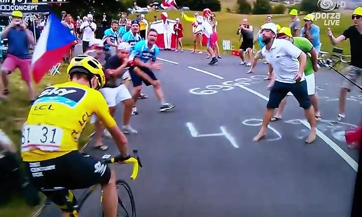 Un espectador escupió este viernes a Chris Froome, líder del Tour de Francia, durante la disputa de la decimonovena etapa.