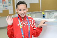 Alzain Tareq, de 10 años, terminó última en su carrera de 50 metros mariposa pero luego estuvo 35 minutos atendiendo a la prensa.