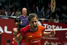 Carolina Marín celebra su victoria tras el punto final. | EFE