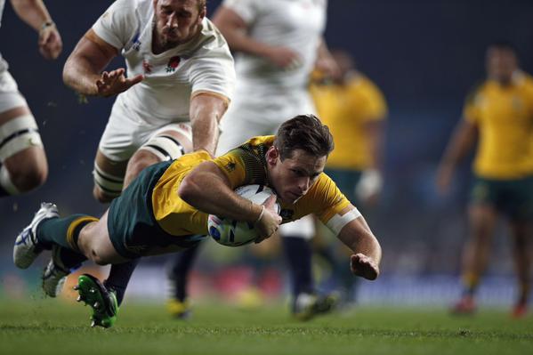 James Foley, apertura de Australia, ensaya ante la mirada del capitán inglés, Robshaw