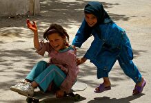 Dos niñas afganas juegan con un patinete en las calles de Kabul | www.skateistan.org