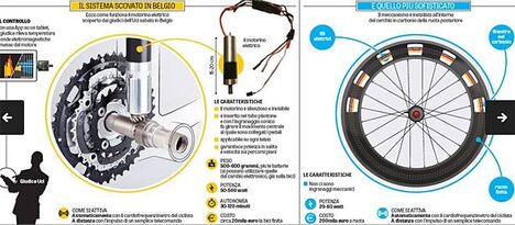 La Gazzetta dello Sport, por su parte, va más allá y habla también de ruedas motorizadas. De hecho, tras el descubrimiento del motor en la bici de Van den Diressche, ya se ha empezado a sospechar de ruedas que giran más de la cuenta. Los rumores ya se han extendido.FOTO
