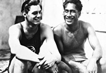 Johnny Weissmuller, junto a Duke Kahanamoku durante los Juegos Olímpicos de París en 1924 | Archivo