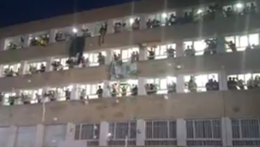 El #BRUTAL recibimiento del colegio Mayor Jaime del Amo de Madrid antes de un partido de baloncesto universitario pic.twitter.com/0uK3yko9Ba