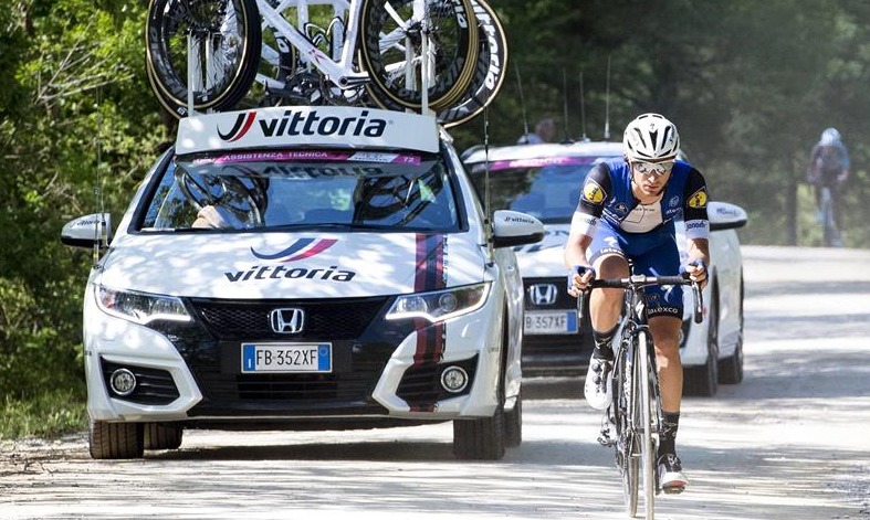 Todo ello, a la espera de la subida a Alpe di Poti, a 28 km de la meta y con 6,5 km sobre tierra y grava, y que pasaba por ser la gran dificultad de la etapa. Así fue. La subida a Alpe di Poti, con 8,6 kilómetros de ascensión y pendientes medias entorno al 9 y el 10 por ciento, era especialmente esperada. Sus 6,5 km sobre tierra y grava, con el primer kilómetro y medio al 14 por ciento eran temidos. Y, por fortuna, en contra de las previsiones, lució el sol y sólo llovió en la mañana.
