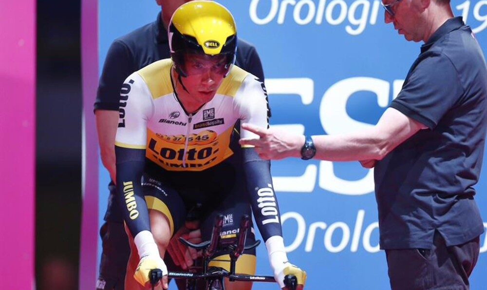 De los "grandes", el ruso Tom Dumoulin (Giant Alpecin), otro de los teóricos favoritos a hacerse con la crono, acabó decimoquinto, a 1'58" (53:43); Brambilla, decimoséptimo, defendió con uñas su liderato, logrando un tiempo de (53:50) que le permite por un segundo sobre Jungels mantener la "maglia rosa".
