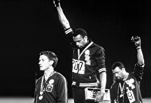 Tommie Smith y John Carlos en el podio realizando su famoso gesto. | Archivo