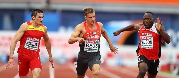 Hortelano ya había hecho historia hora y media antes al convertirse en el primer atleta español que se metía en una final de 100 metros de unos campeonatos de Europa al clasificarse segundo en la tercera semifinal con un tiempo de 10.22.