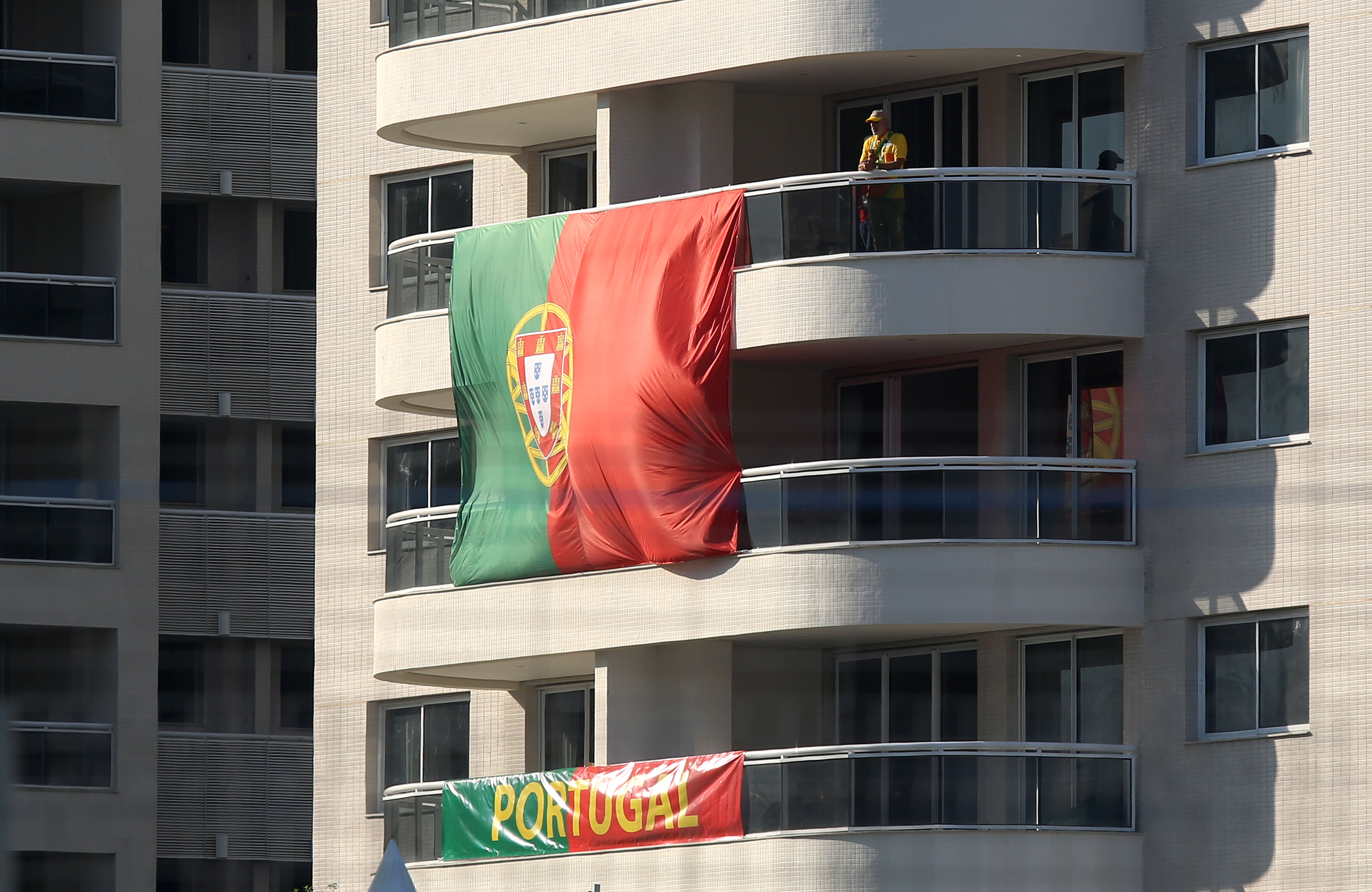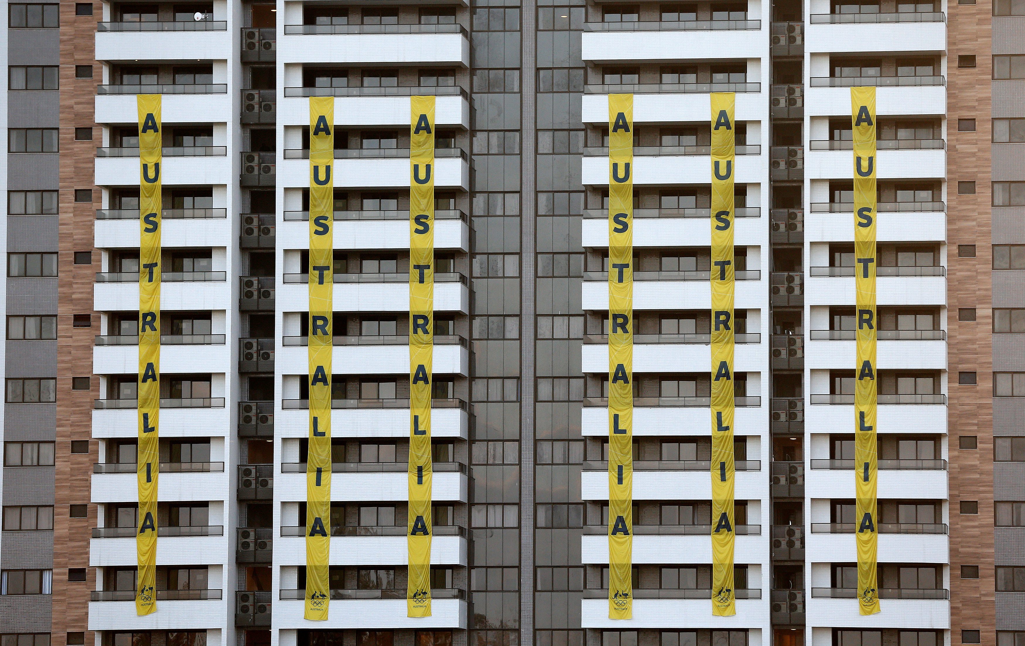 Carteles sobre los balcones en los dormitorios y apartamentos de la delegación de Australia.