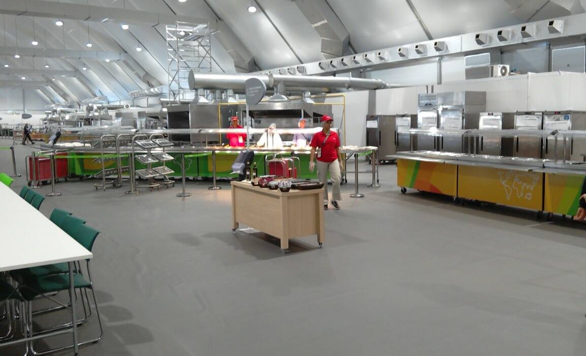 Una de las zonas de comedores en el interior de las intalaciones de la Villa Olímpica.