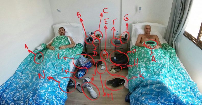 Para finalizar, Ginóbili hace una lista de cada objeto que aparece en la fotografía, entre otros, teléfonos móviles, perfume, las gafas de Nocioni sujetadas entre una pera y un plátano, cargadores portátiles de baterías, repelentes contra el Zika, eBook Kindle, accesorios de audio, la credencial olímpica, una camiseta de Racing de Avellaneda, zapatillas, bolsa de souvenirs, medias usadas por Manu en la ceremonia inaugural, recuperador alimenticio, mochila...