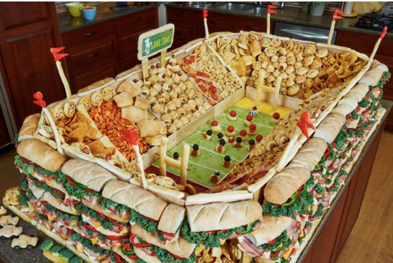 La Super Bowl es el segundo día del año en el que más comida se consume tras Acción de Gracias. Sólo hay que fijarse en una tradición única de los Estados Unidos: la creación de los Snack Stadium, estadios de fútbol americano fabricados con comida. Se consumen 1.300 millones de alitas de pollo. Es decir, que sale a un promedio de cuatro alitas por cada norteamericano. Como consecuencia, también se disparan las ventas de salsas. Los beneficios aumentan un 45%.