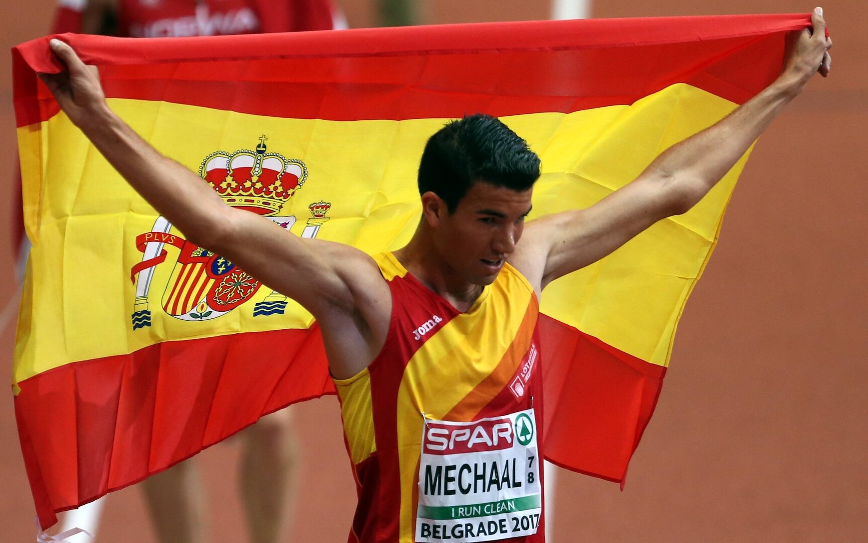 Un año después de proclamarse subcampeón de Europa de 5.000 al aire libre, el español Adel Mechaal relegó al olvido sus problemas con las autoridades antidopaje al conquistar la medalla de oro de 3.000 metros en pista cubierta en una carrera magistral que situó octavo a Carlos Mayo.