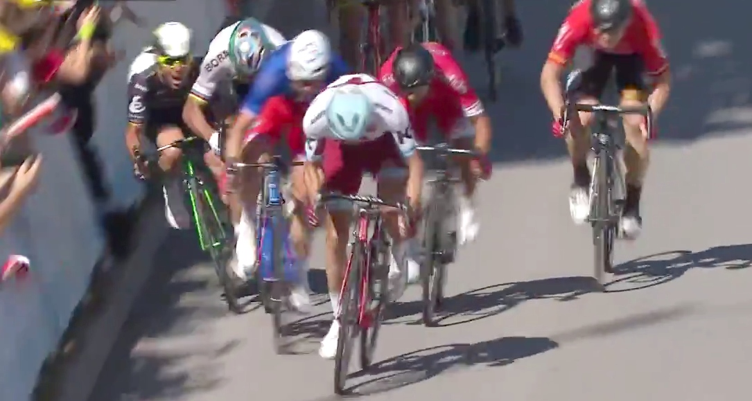 Sagan saca el codo a pasear y Cavendish se estrella contra la valla