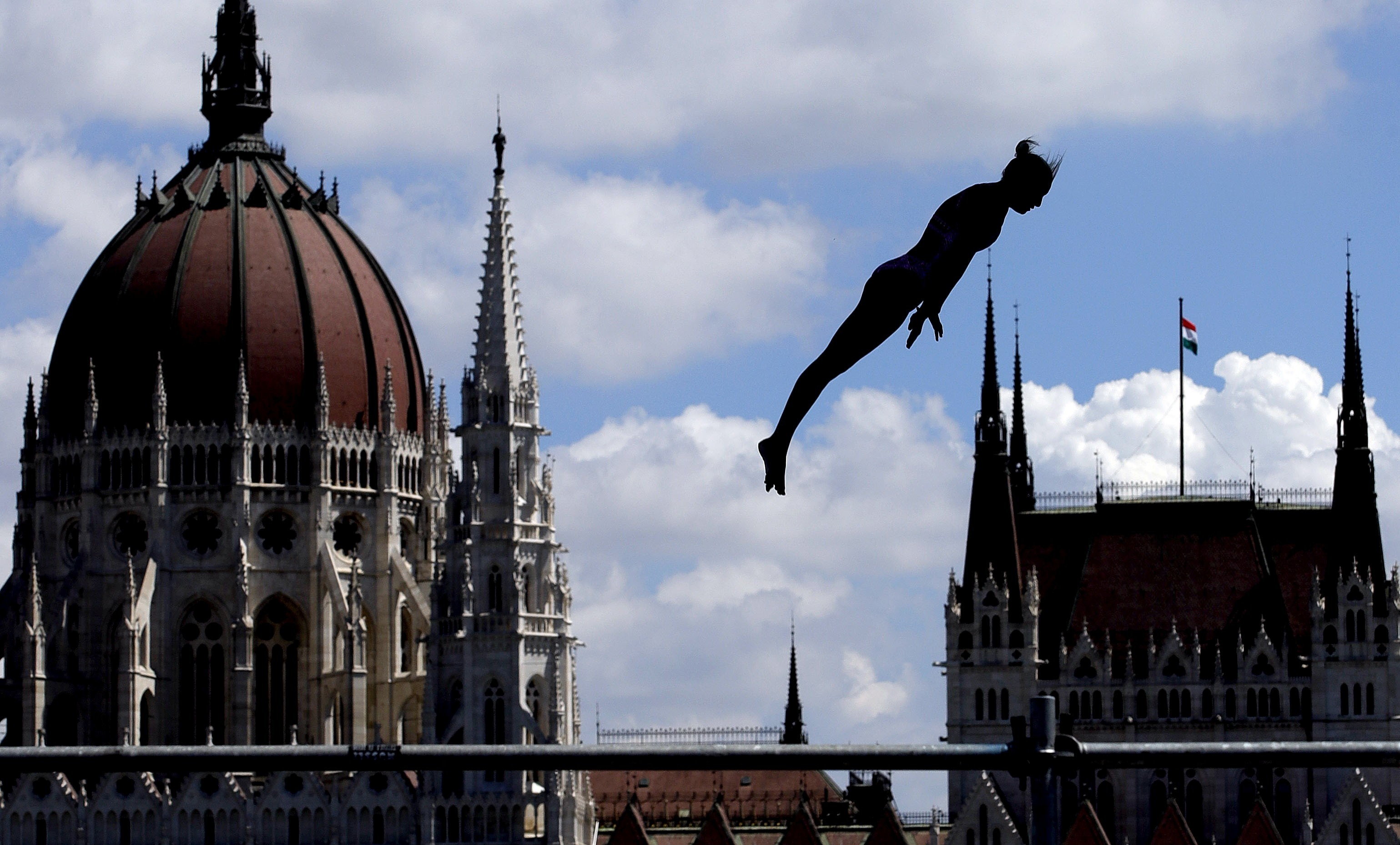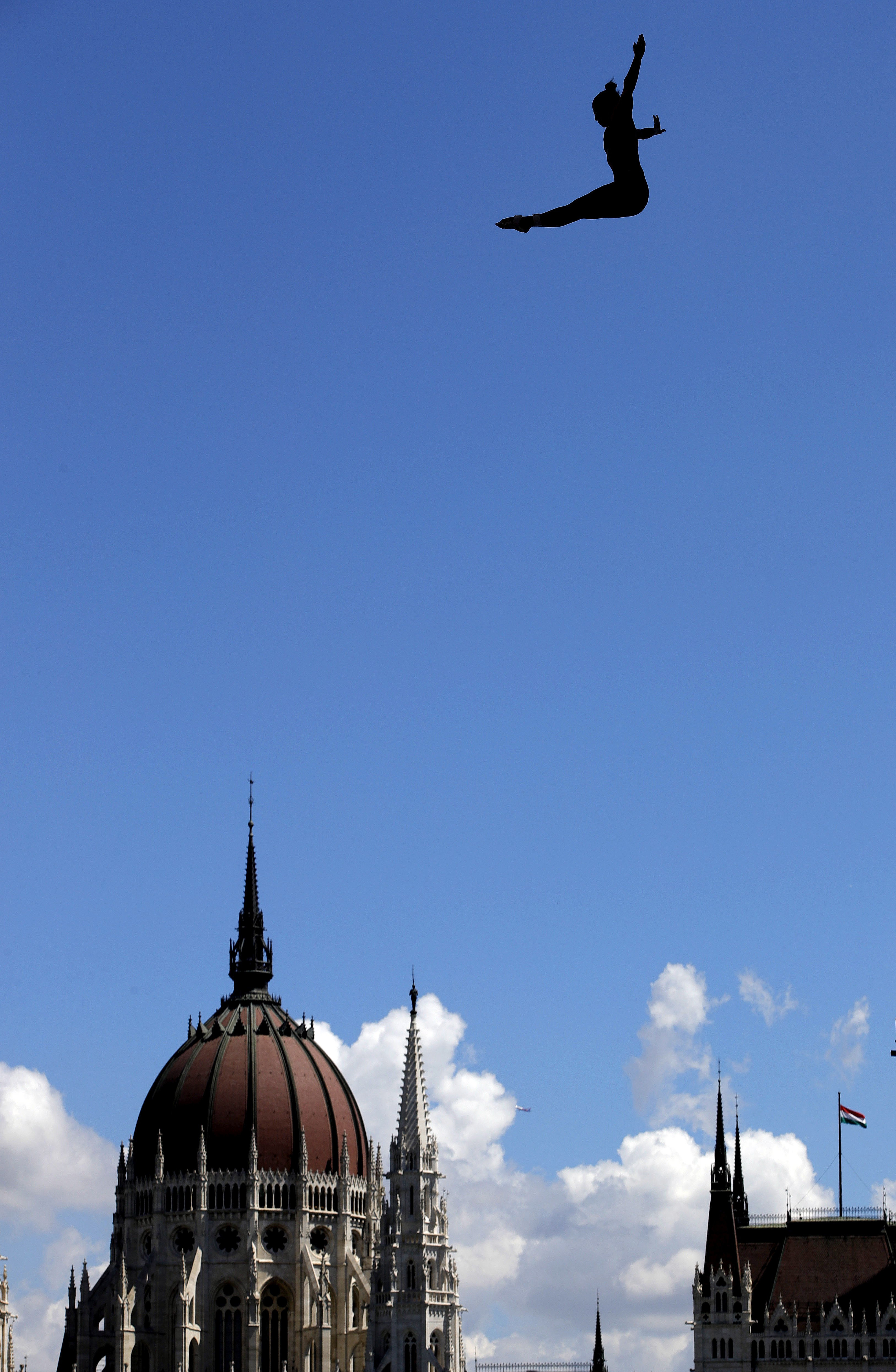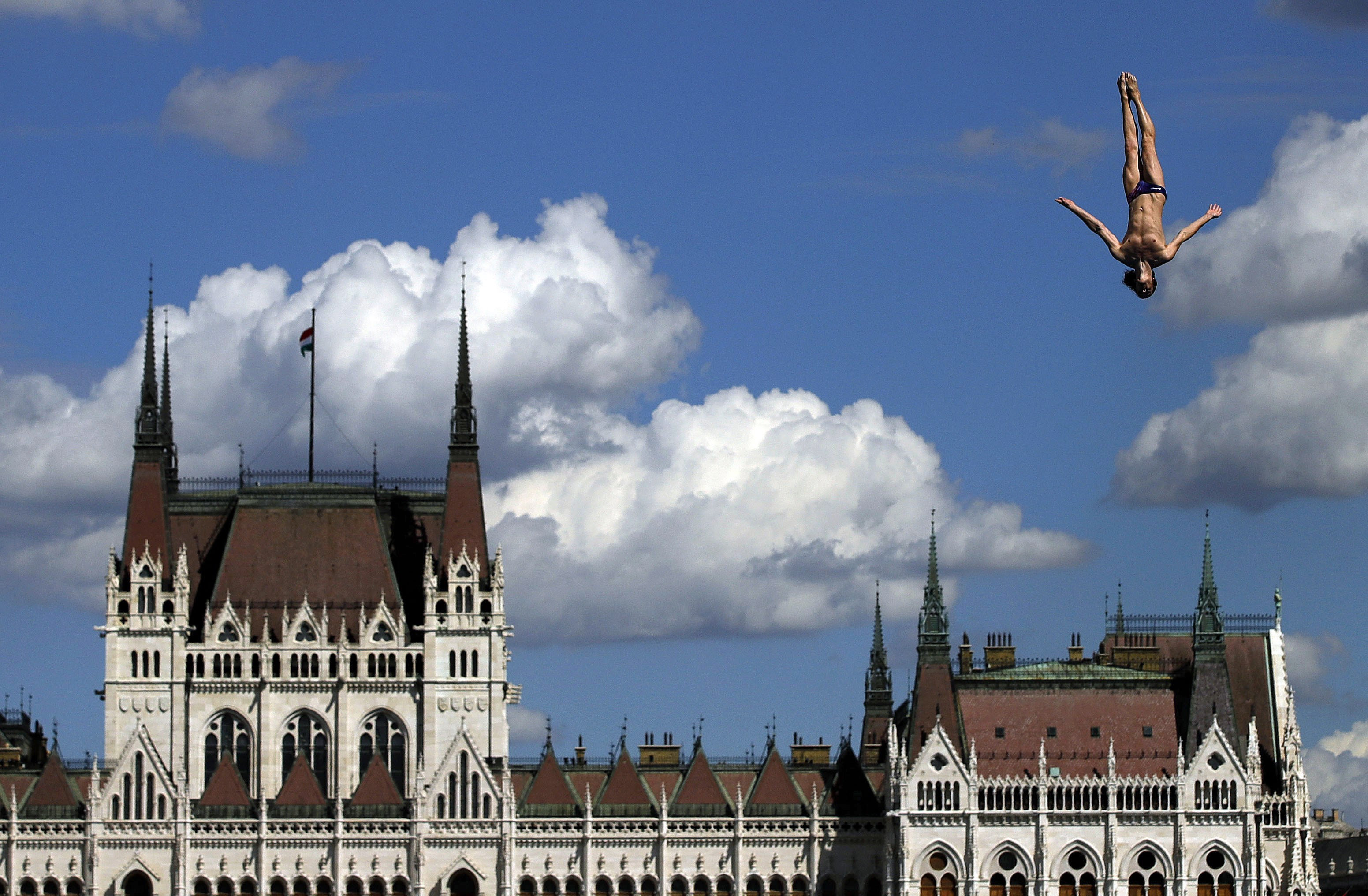 En los Mundiales de Budapest que terminan mañana, los saltos de trampolín han vuelto a ofrecernos un buen puñado de fotos para el recuerdo, con la silueta de los saltadores recortada contra el cielo de la capital húngara y el Parlamento como testigo mudo en la otra orilla del Danubio.