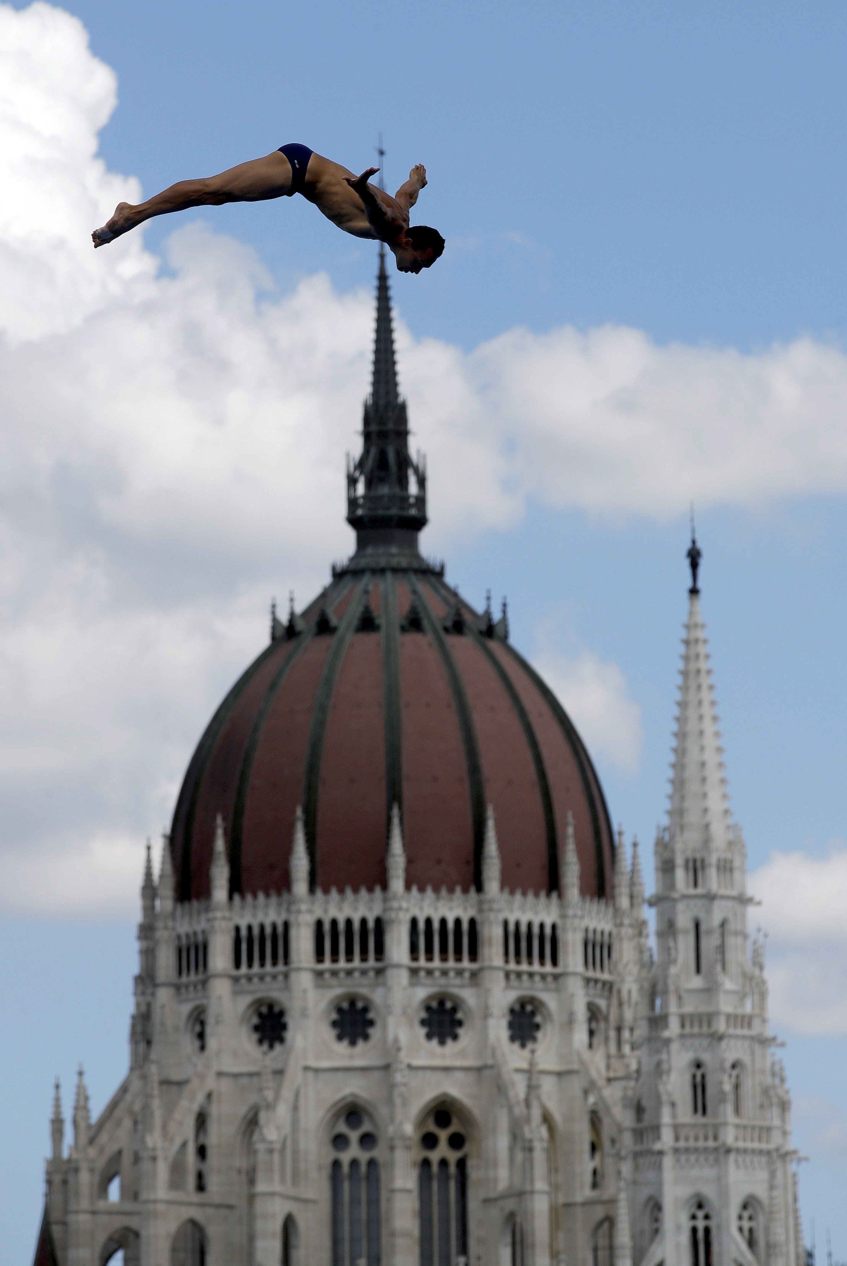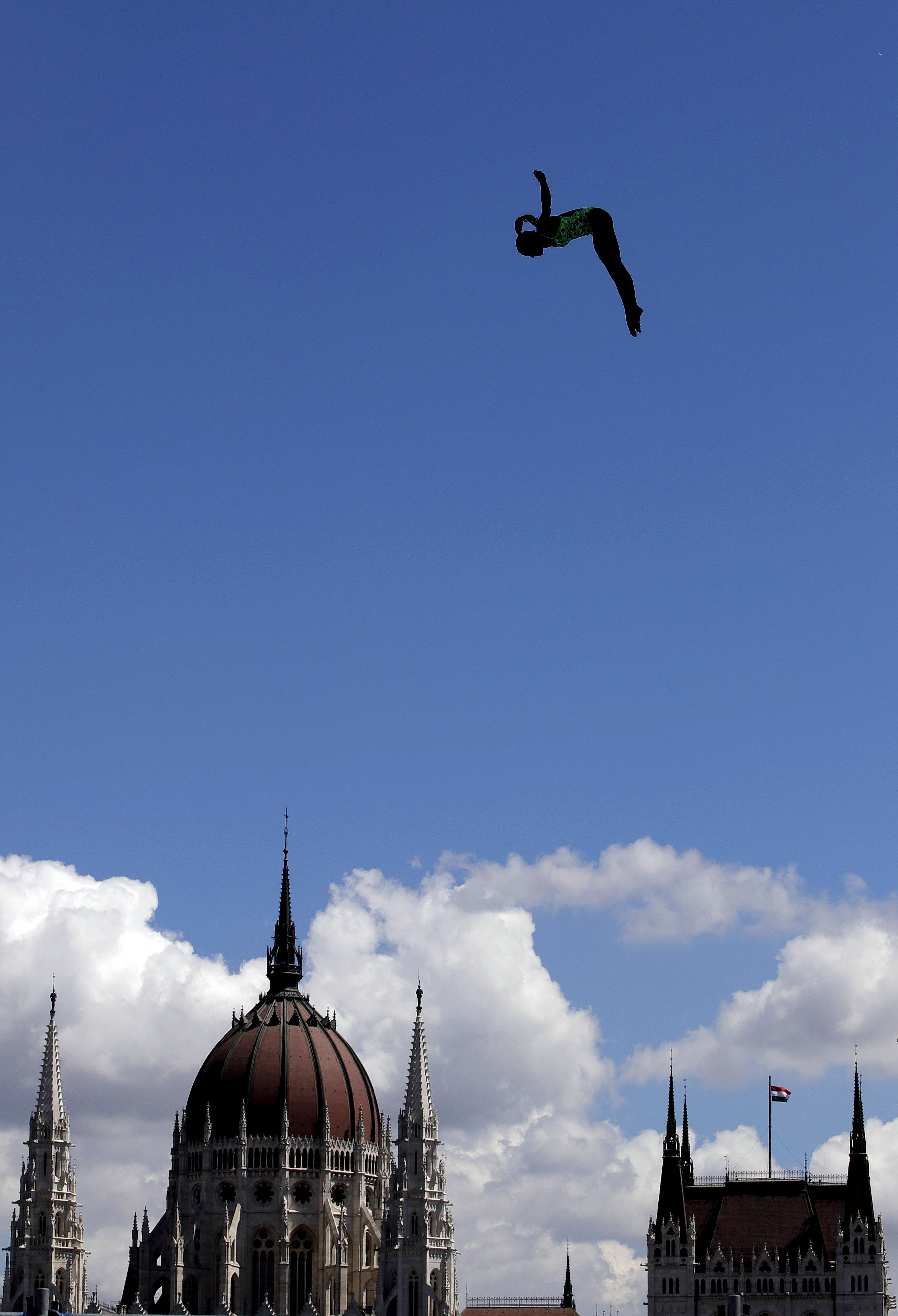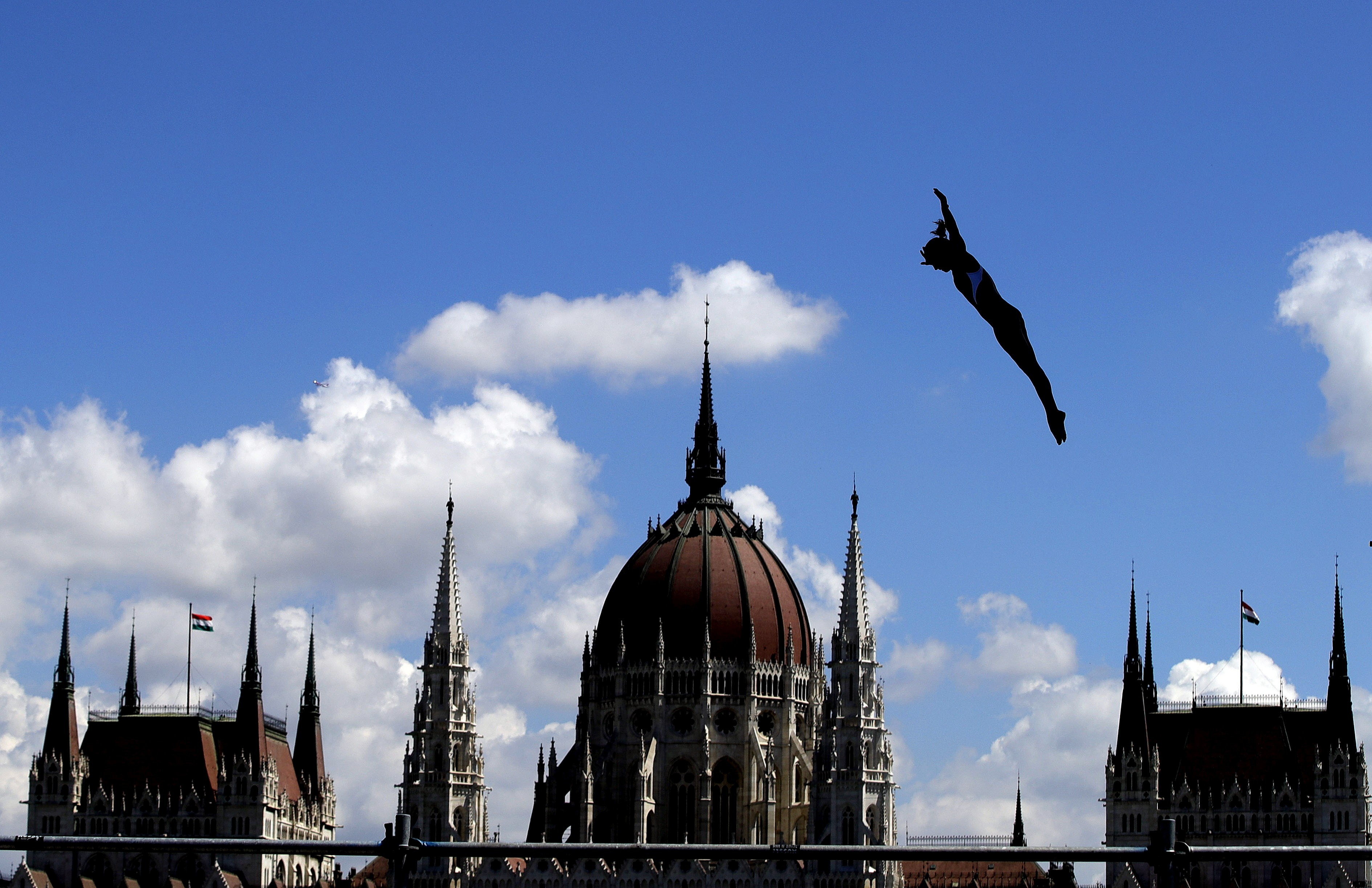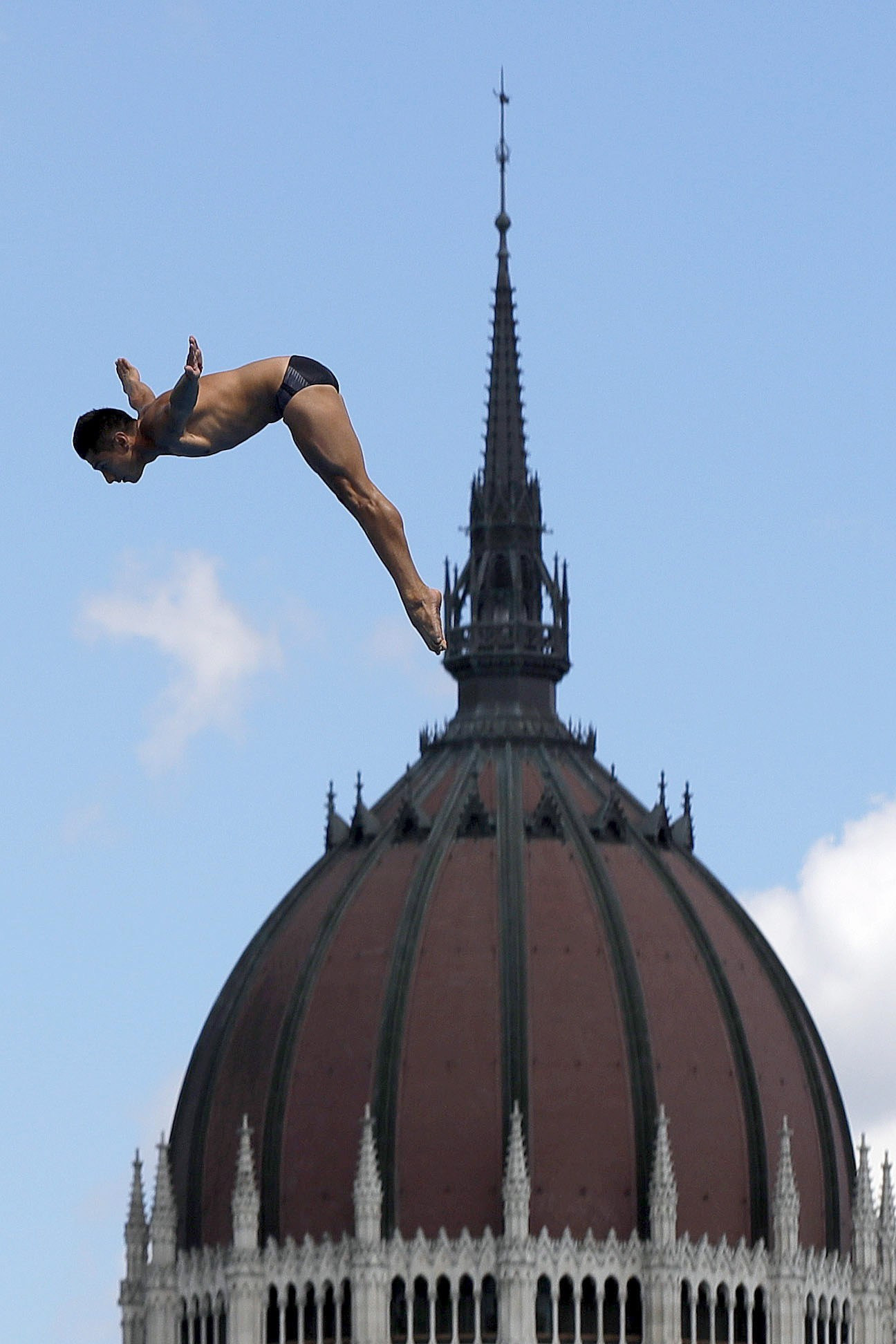 En los Mundiales de Budapest que terminan mañana, los saltos de trampolín han vuelto a ofrecernos un buen puñado de fotos para el recuerdo, con la silueta de los saltadores recortada contra el cielo de la capital húngara y el Parlamento como testigo mudo en la otra orilla del Danubio.