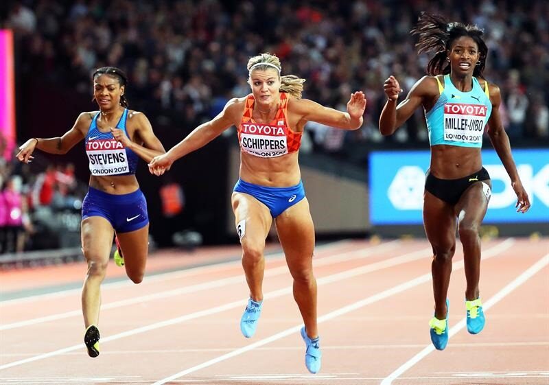 Instantes antes del inicio de la prueba de los 200 metros femeninos, las ocho contendientes en la misma son presentadas entre el jolgorio del público presente en el Estadio Olímpico de Londres para la última prueba de la antepenúltima jornada de los Mundiales de Atletismo 2017. Una tras otra, desfilan hacia sus marcas de salida la costamarfileña Marie-Josée Ta Lou, la canadiense Crystal Emmanuel, las estadounidenses Deajah Stevens y Kimberlyn Duncan, y las bahameñas Tynia Gaither y Shaunae Miller-Uibo. Los decibelios aumentan con la representante británica, Dina Asher-Smith. Acompañando a tan selecto grupo de atletas, la gran favorita, que defiende el título logrado en Pekín dos años antes, es Dafne Schippers, nacida en Utrecht (Holanda), hace 25 años. El matiz que la representa no pasa desapercibido al espectador: entre locomotoras de raza negra, la rubia neerlandesa es la única caucásica. Casi una rara avis en una prueba que, como cualquiera de la velocidad moderna, parece reservada a la genética de los deportistas negros. En ella, la irreductible de Utrecht es como la aldea gala que hace temblar a las que indica la lógica que debieran ser las favoritas.