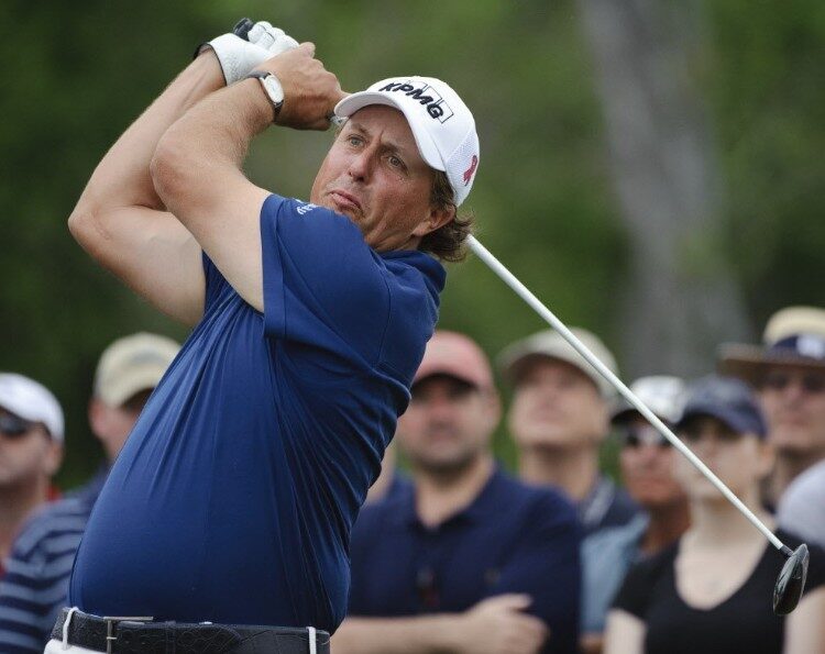 El golfista norteamericano Phil Mickelson demostró su simpatía dejándose aconsejar en un uno de sus golpes por un chico que lo acompañaba en su partido en el TPC de Boston, donde terminó sexto.