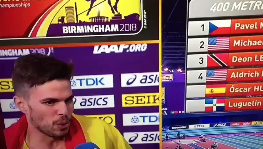 Óscar Husillos ha sido descalificado tras imponerse en la final de los 400 metros del Mundial de pista cubierta de Birmingham con un histórico tiempo de 44.92 que era récord de Europa.